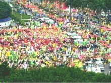 人數(shù)已突破10萬的龐大隊伍已堪稱近年來規(guī)模最大的游行,由于讓這個農(nóng)漁會信用部分級管理政策引燃了“行政院長”游錫堃和多位當局官員請辭。不但游錫堃已接連三次請辭,“政院副院長”林信義、“財政部長”李庸三等人都遞出辭呈。至于“農(nóng)委會主委”范振宗則是在今早向游錫堃提出辭呈,并當眾表明在參與游行之后便立刻辭職。