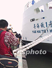 潔白的“粵海鐵一號”,遠(yuǎn)看與海南百姓見識多了的海輪并無二致:一百六十五點(diǎn)四米的船身,顯得非常修長。進(jìn)入港池的巨輪向左緩緩轉(zhuǎn)向,忽然人群中發(fā)出一陣歡呼,碼頭上的鞭炮開始熱烈爆響——因?yàn),在船的?cè)身,巨大的中鐵標(biāo)志終于展現(xiàn)在海南人民眼前。從此,坐著火車上北京不再是難以實(shí)現(xiàn)的夢想。