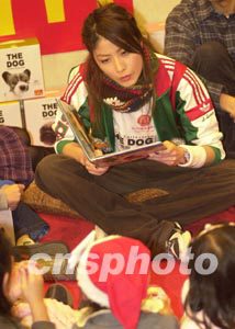 歌星陳慧琳11月29日在香港出席“麥當勞抱抱大頭狗”愛心慈善活動,陳慧琳為出席活動的小朋友講故事,其形象健康深受小朋友歡迎。中新社傳真 鄧慶樂 攝