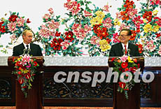 中國國家主席江澤民與俄羅斯總統(tǒng)普京二日在北京人民大會堂舉行會談并出席簽字儀式后,共同會見中外記者。作者:毛建軍