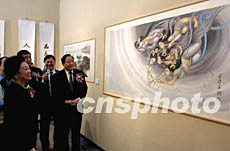 全國政協(xié)副主席葉選平為本次書畫展題詞“中華文化在五洲”,國務院僑辦主任郭東坡為書畫展題寫了前言。中國僑聯(lián)副主席李祖沛,香港著名藝術家、廣州市榮譽市民梁潔華女士分別代表主辦單位和海外華僑華人致詞。廣州市副市長蘇澤群主持開幕式。