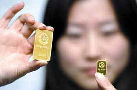 在黃金交易所的交易中,黃金只是抽象的概念,按成色、價格和當(dāng)日行情成交,品牌根本沒有什么意義。世界黃金協(xié)會中國區(qū)經(jīng)理王立新昨天向記者表示,金礦企業(yè)打出黃金品牌的意義主要是看好中國的個人投資市場,即用于個人收藏和投資的金磚、金條。我國今年前三季度金飾需求145.6噸,投資產(chǎn)品需求僅為0.9噸,因此用于投資的金磚、金條市場潛力很大。一旦放開市場,準(zhǔn)許個人投資黃金,那么有信譽保證的品牌黃金就能在市場上掘得第一桶金。中國黃金協(xié)會副秘書長許守信稱,由于中國一直不允許個人持有黃金,民間需求相當(dāng)強勁,因此一旦政策松動,一年的投資黃金需求量估計能達到100噸,這對每個黃金生產(chǎn)企業(yè)都有吸引力,品牌黃金則可以搶到市場先機。