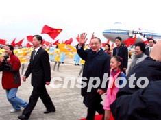 上午9:10時(shí),國(guó)務(wù)院副總理、中國(guó)申博代表團(tuán)團(tuán)長(zhǎng)李嵐清和夫人,中共中央政治局委員、國(guó)務(wù)委員、國(guó)家申博委主任吳儀,中共中央政治局委員、上海市委書(shū)記、上海市市長(zhǎng)、國(guó)家申博委副主任陳良宇等步下舷梯,接受了四名少先隊(duì)員代表獻(xiàn)上的鮮花。上海市市領(lǐng)導(dǎo)到機(jī)場(chǎng)迎接。