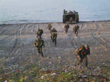 5日清晨,聯(lián)興88號(hào)操演地點(diǎn),海象相當(dāng)良好,風(fēng)平浪靜,操演正式下達(dá)命令后,只見(jiàn)海軍兩棲登艦艇,在空軍戰(zhàn)斗機(jī)及陸軍攻擊直升機(jī)掩護(hù)下,載運(yùn)包括戰(zhàn)車(chē)、捍馬車(chē)等車(chē)輛及海軍陸戰(zhàn)隊(duì)官兵弟兄們,發(fā)動(dòng)5、6波搶灘登陸,與岸上反登陸部隊(duì)發(fā)生激戰(zhàn),在完成消滅岸上反登陸部隊(duì)及清除岸上地雷后,順利搶灘登陸成功。
