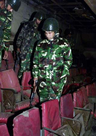 軍警在電影院外檢查軍輛