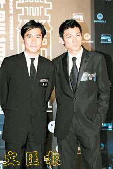 據(jù)港報報道,幾位主角劉德華﹑梁朝偉﹑陳冠希﹑黃秋生及余文樂等,都穿黑色服裝出席,而到場的唯一一位女演員蕭亞軒卻穿得十分鮮艷,形成強烈對比。眾演員先在時代廣場的露天廣場舉行祝酒儀式,為見偶像一面,現(xiàn)場早已圍滿了數(shù)百fans,而到場采訪的記者也近百人。當(dāng)劉德華與梁朝偉出場時,fans不停尖叫,兩位男主角更互斗電力,偉仔單眼,華仔則瞇眼,不時做出放電的表情,令現(xiàn)場fans“喧嘩鬼叫”。