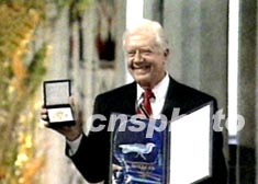 圖:美國(guó)前總統(tǒng)吉米·卡特領(lǐng)取諾貝爾和平獎(jiǎng)