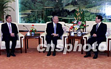 今天下午,大會堂福建廳內,燈火通明。三時,國家副主席胡錦濤在這里會見了香港特別行政區(qū)行政長官董建華和澳門特別行政區(qū)行政長官何厚鏵。