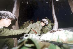 沈陽軍區(qū)某野戰(zhàn)部隊十二月在中國北方的林海雪原中進行抗嚴寒緊急拉動訓練,以提高部隊在嚴寒條件下的反恐作戰(zhàn)能力。作者:蓋旭輝