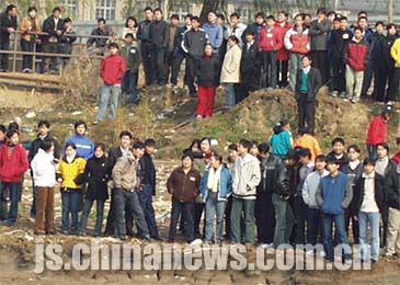 南京市民關(guān)注這條受傷的白鱘。丁東升 攝