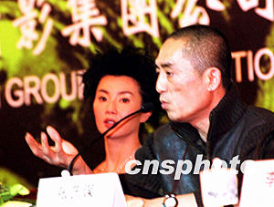 張藝謀率張曼玉、梁朝偉、陳道明、章子怡等劇組人員與參加首映禮的媒體見面。