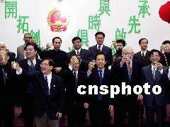 紐約中國(guó)和平統(tǒng)一促進(jìn)會(huì)十二月十五日舉行中共十六大成果圖片展。圖為中國(guó)駐紐約總領(lǐng)事張宏喜和紐約中國(guó)和平統(tǒng)一促進(jìn)會(huì)會(huì)長(zhǎng)花俊雄、紐約華人社團(tuán)聯(lián)合總會(huì)主席梁冠軍等紐約僑界人士在展覽開幕式上共同舉杯,祝愿中國(guó)國(guó)運(yùn)昌盛、明天更好。趙海燕 攝