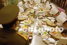 解放軍總參謀部十七日在北京舉行烹飪技術(shù)比賽,以促進(jìn)部隊(duì)生活水平的提高。解放軍部隊(duì)的伙食正在向著科學(xué)型、營(yíng)養(yǎng)型轉(zhuǎn)變。作者:宋吉河