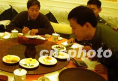 解放軍駐北京某部隊(duì)二十日請地方名廚師傳授烹飪技術(shù)并為戰(zhàn)士的飯菜打分,以提高官兵的伙食質(zhì)量。作者:宋吉河