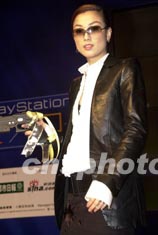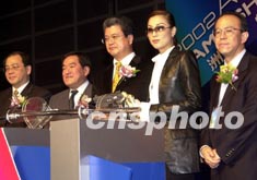 歌影紅星鄭秀文12月21日在香港出席“2002年亞洲游戲展”,與多家著名的游戲生產(chǎn)商代表一同主持開幕典禮。中新社傳真 鄧慶樂 攝