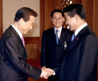 中新網(wǎng)12月23日電 韓國新當選總統(tǒng)盧武鉉23日與現(xiàn)任總統(tǒng)金大中舉行了大選后首次會談,商討權(quán)力交接,其中涉及朝鮮核問題。