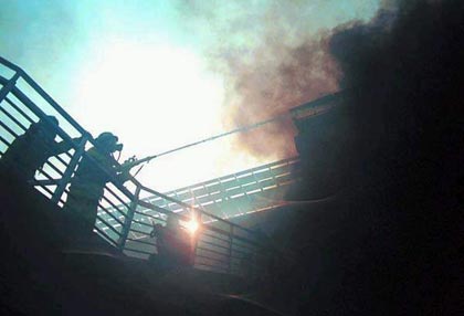 10時09分,指揮部根據(jù)前沿指揮員報告現(xiàn)場偵檢情況,不明氣體屬于有毒腐蝕性不強(qiáng)的氨氣。為避免不必要的傷害,指揮部采取強(qiáng)大的噴霧水流措施驅(qū)散氣體,加強(qiáng)外圍警戒;10點(diǎn)20分,車道內(nèi)的氣體驅(qū)散完畢,指揮部一聲令下發(fā)起總攻,數(shù)百條水龍一齊噴射。