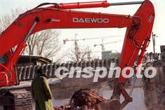 大型機(jī)械歲末在北京東城北新橋一帶拆舊建新。進(jìn)展迅猛的北京危舊房改造工程業(yè)已向二環(huán)城內(nèi)發(fā)展,大批二十世紀(jì)初的破舊民房將逐漸被高樓大廈取代。作者:鄒憲