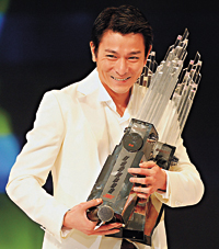 曾經(jīng)一度雄霸樂壇的四大天王,今年只得劉德華一人繼續(xù)和一班年輕歌手競逐。華仔上臺領獎時表示要多謝一直以來支持自己的人,在這樣的環(huán)境下仍對他鼓勵的朋友,大家不用擔心,他會好好地活下去,而此時和華仔曾打官司的中建主席麥紹棠也在臺下支持其子麥浚龍。