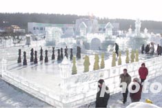 新年長春凈月潭冰雪旅游節(jié)的游樂園中,妙趣橫生的冰雕作品《國際象棋》已創(chuàng)作完成。作者:韓丹
