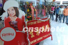廣東惠州市數(shù)碼商業(yè)街新年之際隆重開業(yè),在新落成的數(shù)碼商業(yè)街上,影星趙薇的廣告隨處可見。中新社傳真 錢興強攝