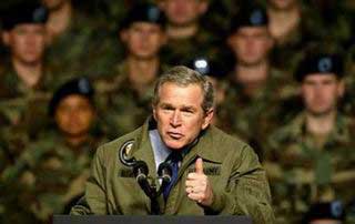 身穿綠色軍用夾克的布什對四千多名軍人及他們的家屬發(fā)表演說,他語調(diào)慷慨激昂:“我們已做好準(zhǔn)備!睂σ晾说膽(zhàn)爭并“不是去征服,而是去解放”。