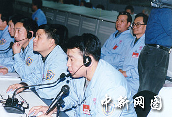 圖:科技人員精控“神舟”四號(hào)飛船運(yùn)行