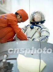 圖:中國(guó)“模擬人”進(jìn)入“神舟”四號(hào)飛船