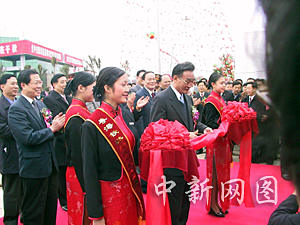 十點(diǎn)四十六分,中共中央政治局常委、國務(wù)院副總理吳邦國在棧橋火車前為粵海鐵開通剪彩。