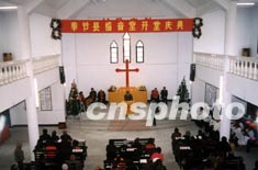 圖:遷建的三峽庫(kù)區(qū)基督教堂開(kāi)堂