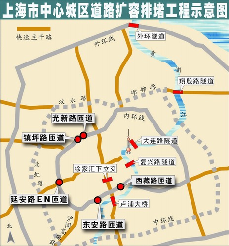越江工程———盧浦大橋、外環(huán)隧道將在今年上半年通車,大連路隧道9月通車;復(fù)興路隧道預(yù)計(jì)明年建成通車;翔殷路隧道今年開工。