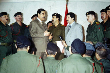 圖:伊總統(tǒng)薩達(dá)姆接見共和國(guó)衛(wèi)隊(duì)高級(jí)將領(lǐng)