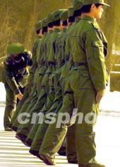圖:解放軍通信女兵接受新兵隊列訓(xùn)練