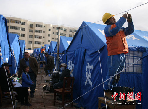 青海玉樹震后首所學(xué)校恢復(fù)供電