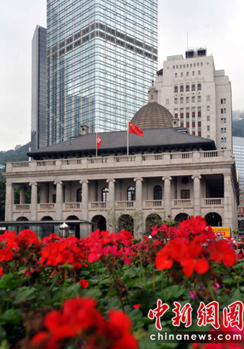 香港立法會(huì)大樓下半旗哀悼地震遇難同胞