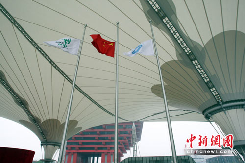 上海世博園區(qū)降半旗哀悼玉樹地震遇難者