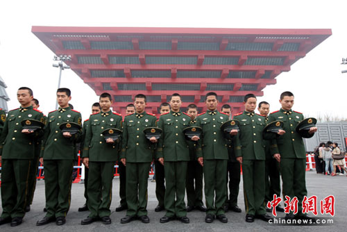 武警世博園中國(guó)館前悼念遇難同胞
