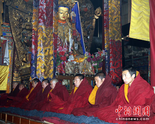 拉薩大昭寺僧人為玉樹災(zāi)區(qū)祈福