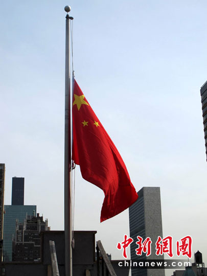 中國(guó)常駐聯(lián)合國(guó)代表團(tuán)下半旗為地震遇難同胞致哀