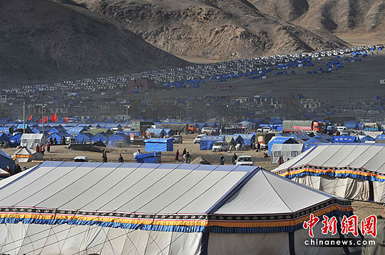 圖:玉樹出現(xiàn)救災(zāi)帳篷新城