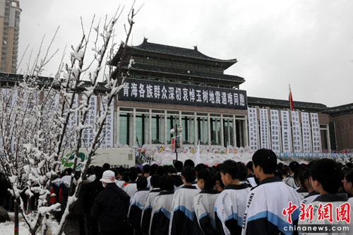 圖:青海各界民眾悼念玉樹地震遇難者