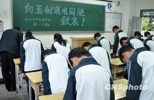 圖:浙江溫嶺學(xué)生哀悼玉樹地震遇難同胞