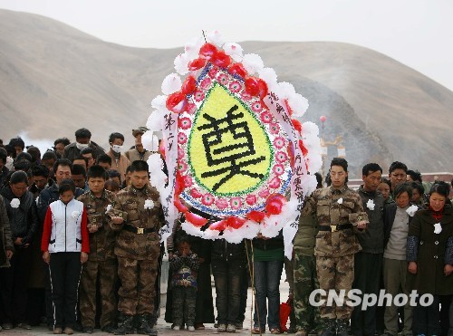 圖:玉樹機(jī)場(chǎng)抗震救災(zāi)官兵向遇難同胞致哀