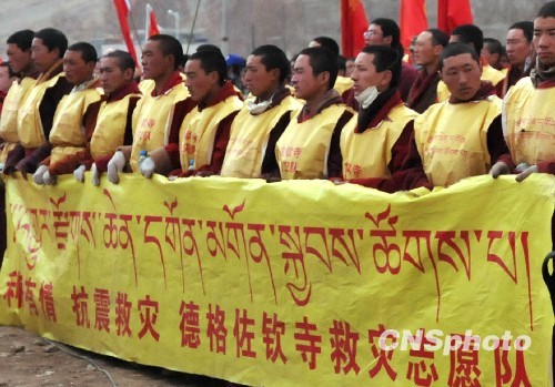 圖:藏族僧侶向地震遇難同胞致哀