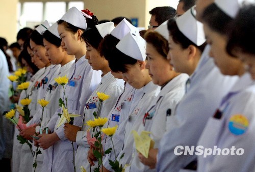 新疆醫(yī)護(hù)工作者哀悼玉樹地震遇難同胞
