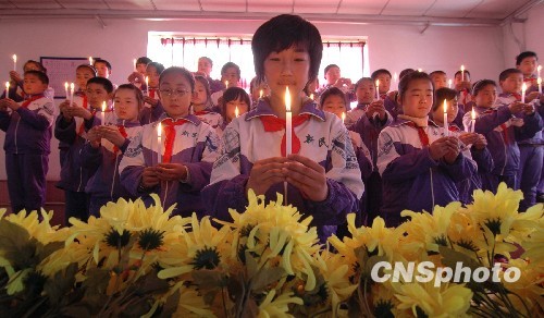 圖:河北小學(xué)生為玉樹地震遇難同胞祈禱