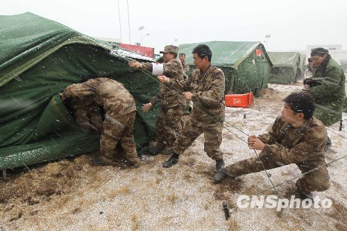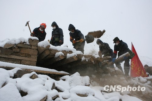 圖:風(fēng)雪中的抗震救災(zāi)官兵