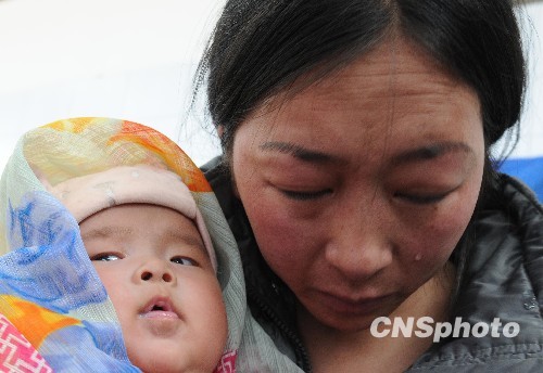 全國(guó)哀悼日:玉樹幸存母子倆流淚致哀
