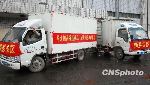 圖:華藥價(jià)值百萬(wàn)元藥品雨中急赴玉樹災(zāi)區(qū)
