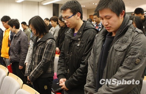 圖:民族大學(xué)師生為玉樹遇難同胞默哀